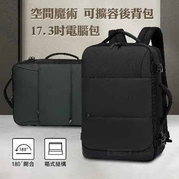 點我下載極致黑 17.3吋 空間魔術 可擴容式大空間旅行商務後背包 箱式開合手提電腦包