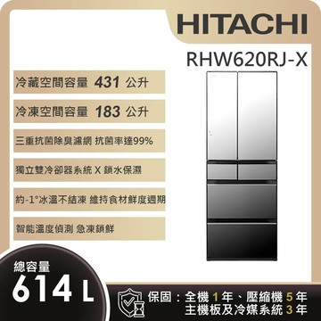 點我下載登錄送+雙重送★【HITACHI 日立】614L一級能效日製變頻六門冰箱 (RHW620RJ-X)