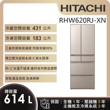 點我下載登錄送+雙重送★【HITACHI 日立】614L一級能效日製變頻六門冰箱 (RHW620RJ-XN)