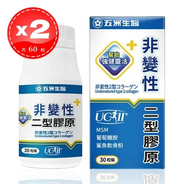 立即體驗【五洲生醫】 非變性二型膠原蛋白膠囊 王彩樺推薦 30粒*2盒(共60粒)