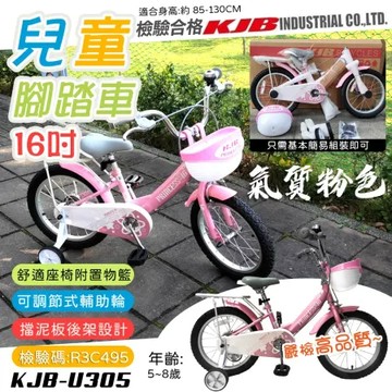 點我下載【KJB APACHE】16吋兒童輔助輪腳踏車-粉(輔助輪 學習車 童車 全配 輕量 潮流 高品質保證/U305-P)