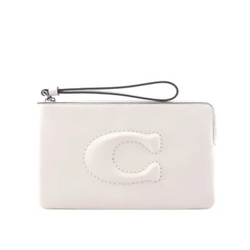 立刻下載【COACH】C Logo 銀釦縫線標誌平滑皮革大款手拿包(白色)
