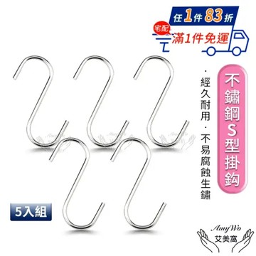 點我下載 【Amywo艾美窩】S型掛鈎 不鏽鋼S型掛勾(5入組) S勾IH-02302 金屬掛勾 不銹鋼掛勾 衣帽掛鉤 廚房掛勾