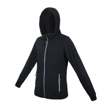 點我下載M FIRESTAR 女彈性防曬連帽外套-涼感 運動 慢跑 路跑 上衣 黑銀