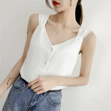 點我下載白色 【BJ COLLECTION】日系質感雪紡V領肩帶背心上衣 BJC30048 (2色)FREE