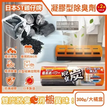 點我下載(2盒超值組)日本ST雞仔牌-大型收納空間用脫臭炭強力消臭凝膠除臭劑300g/大橘盒(長效約90天,衣櫃櫥櫃消臭淨味)