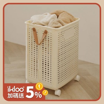 點我下載陶瓷白 【ikloo】可折疊提把收納籃-附輪 2色可選 (多功能 帶把手 衣籃 髒衣籃 收納籃 衣物籃 玩具籃 折疊洗衣籃