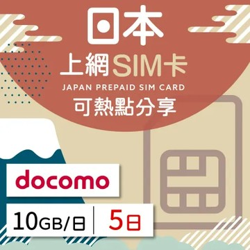 點我下載日本 上網SIM卡 5天每日10GB 降速吃到飽 4G高速上網 Docomo 手機上網 隨插即用 熱點分享 日商品質保證