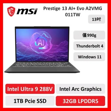 立刻下載msi 微星 Prestige 13 AI+ Evo 011TW 13吋 商用筆電 U9/32G/1T/Arc/新品預購