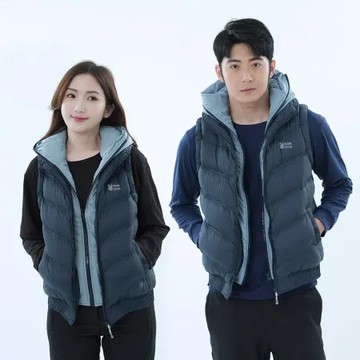 點我下載深藍-M 【遊遍天下】男女款假二件式防潑水防風連帽保暖90%羽絨背心GV22018(M-5L 大尺碼) / 深藍