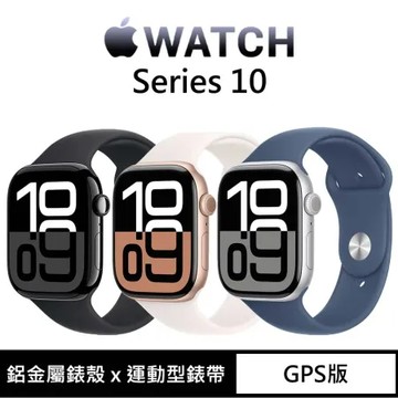 Apple Watch Series 10 (GPS版) 46mm鋁金屬錶殼搭配運動型錶帶- M/L