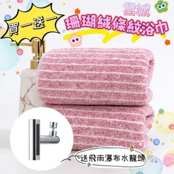 點我下載奶茶棕 【雲絨】珊瑚絨條紋浴巾 送飛雨瀑布水龍頭 柔軟吸水 毛巾