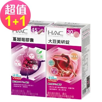 點我下載【永信HAC】蔓越莓膠囊(90粒/瓶)+大豆美研錠(120錠/瓶)