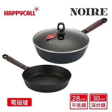 立刻下載【韓國HAPPYCALL】NOIRE石墨烯IH鈦熔岩雙鍋組(30cm深炒鍋+30cm鍋蓋+28平底鍋)