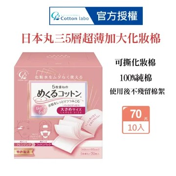 點我下載CottonLabo 日本丸三 五層超薄加大化妝棉70枚X10盒 卸妝棉 濕敷棉 自製面膜