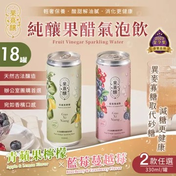 點我下載【果熹釀】古法純釀果醋氣泡飲 藍莓蔓越莓/青蘋果檸檬 兩款任選x18罐(水果醋/氣泡水/天然釀造/團購飲品)