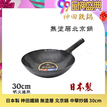 點我下載【神田KANDA】日本製 神田鐵鍋 無塗層 北京鍋 中華炒鍋 鐵鍋 30cm(明火適用)