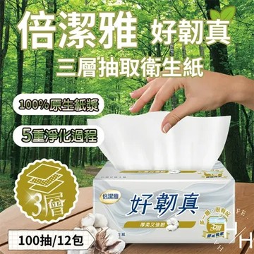 點我下載【倍潔雅】2串組-好韌真三層抽取式衛生紙(100抽x12包x2串)