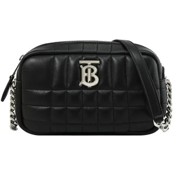 點我下載BURBERRY 8064854 Mini Lola 絎縫格紋小羊皮相機包.黑/銀