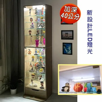點我下載木紋白 BuyJM低甲醛加深40公分LED燈鏡面背板附抽屜強化玻璃180cm展示櫃/公仔櫃/書櫃/收納櫃/置物櫃/玻璃櫃