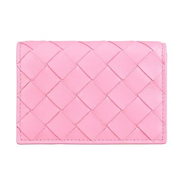 點我下載BV BOTTEGA VENETA Intrecciato內裡壓印LOGO小編織格紋設計小羊皮2卡釦式卡包(絲帶粉)