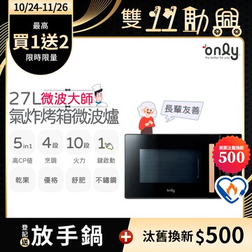 立刻下載only微波大師27L氣炸烤箱微波爐OM27-M54質感黑(乾果/舒肥/優格/氣炸鍋)