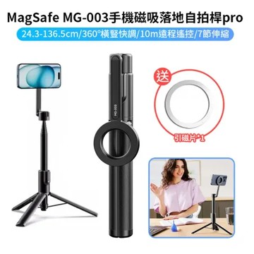 立刻下載黑色 ULANZI 優籃子 MG-003 PRO 手機磁吸自拍桿三腳架 送乾燥包三入組