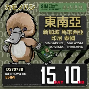 點我下載【鴨嘴獸 旅遊網卡】東南亞 新馬印泰eSIM 15天 10GB 用完斷網 免插卡上網卡
