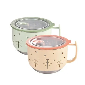 點我下載綠+黃 【鵝頭牌】森呼吸304不鏽鋼隔熱湯碗2入組