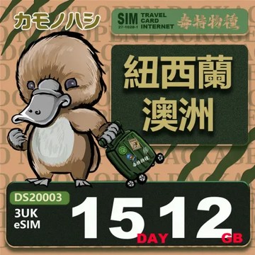 點我下載【鴨嘴獸 旅遊網卡】3UK eSIM 紐西蘭 澳洲 15天12GB 用完斷網 免插卡上網卡