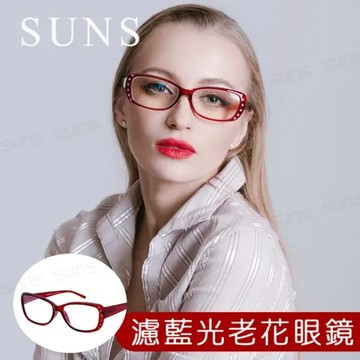 點我下載100度 【SUNS】MIT抗紫外線濾藍光老花眼鏡 鑲鑽經典紅框 高硬度耐磨鏡片 配戴無暈眩感