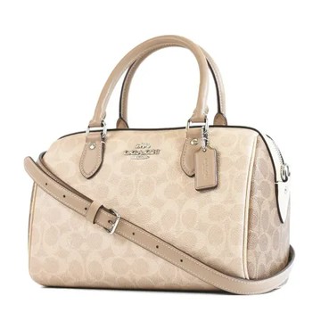 立刻下載COACH 配色小C防刮皮革手提/斜背二用波士頓包-灰褐