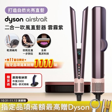 點我下載Dyson Airstrait二合一吹風直髮器 HT01 雲霧紫 (送收納架+光澤雙梳X2)