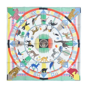 點我下載Hermes 愛馬仕 Le Carrousel du Tigre Royal 90 手工捲邊斜紋真絲方巾(白色/綠色)