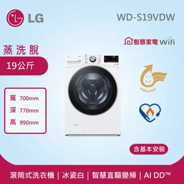 點我下載【LG 樂金】 19公斤 蒸氣滾筒洗衣機 蒸洗脫烘 冰瓷白 (WD-S19VDW) 公司貨 限量特惠