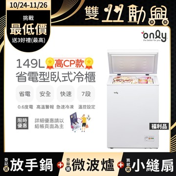 點我下載贈DC變頻小縫扇~only高CP款149L臥式冷凍櫃OC149-NK01Z福利品 上掀式/耗電量與變頻相仿