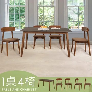 點我下載《Homelike》喜家居140cm黑岩板胡桃餐桌椅組(一桌四椅)(2517-31)