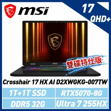 點我下載msi微星 Crosshair 17 HX AI D2XWGKG-007TW 17吋 電競筆電(雙碟特仕版)