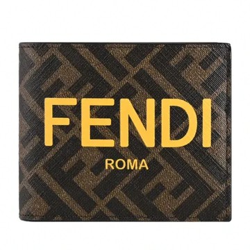 點我下載FENDI 7M0338 品牌LOGO印花撞色皮革對開短夾.深咖/黃
