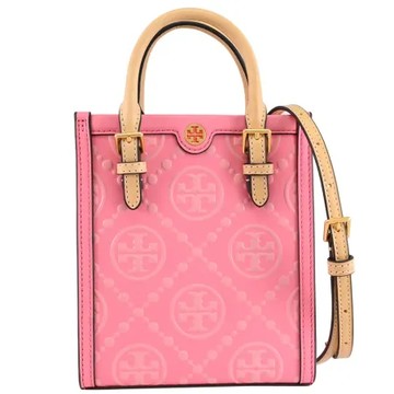 點我下載TORY BURCH 146251 T Monogram 立體壓花皮革兩用包.粉/淺褐