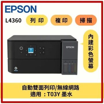 立刻下載下殺 EPSON L4360 三合一Wi-Fi 自動雙面列印 智慧 連續供墨印表機 複合機