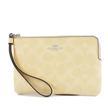 COACH 緹花LOGO防刮皮革手拿包-淡黃