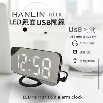 小麥購物 LED聲控數字時鐘 鏡面調光 雙鬧鐘 帶USB線 黑色