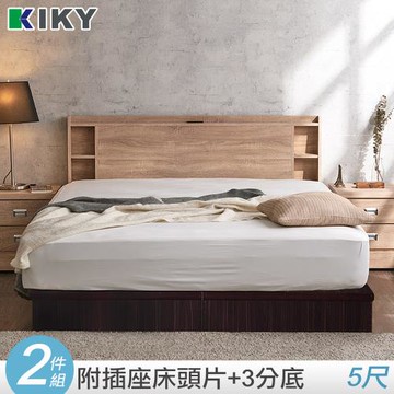 【KIKY】紫薇可充電收納二件床組 雙人5尺(床頭片+六分床底)雪松色