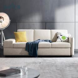 【hoi!】 林氏木業簡約現代多功能儲物左三人布沙發床附抱枕1004 V2-米白色