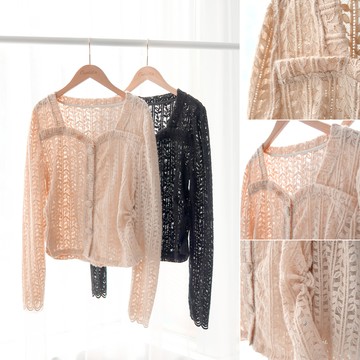 【MR8155】220218微透毛蕾絲愛心領四釦上衣 黑/杏 XL-4XL (預購)