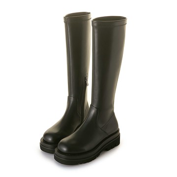 amai 不掉筒百搭厚底長靴 高筒靴 騎士靴 瘦瘦靴 低跟靴 長筒靴 厚底靴 粗跟 時尚 大尺碼 黑色 GB621BK