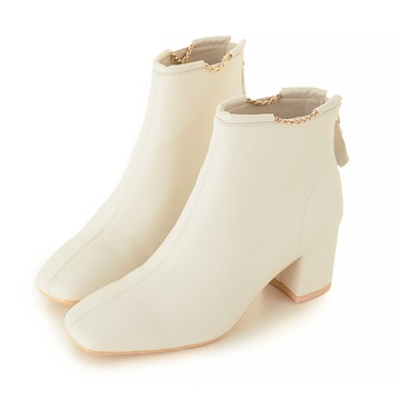 (35.40最後一雙)低奢小名媛方頭粗跟短靴 杏 GB882BE