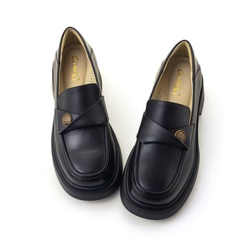 (限時⬊3折)GREEN PINE學院風金屬標平頭樂福粗跟鞋 黑色 (00314982)