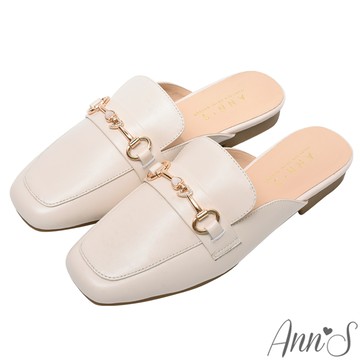 Ann’S質感真小羊皮優雅金鍊穆勒鞋-黑(版型偏小)